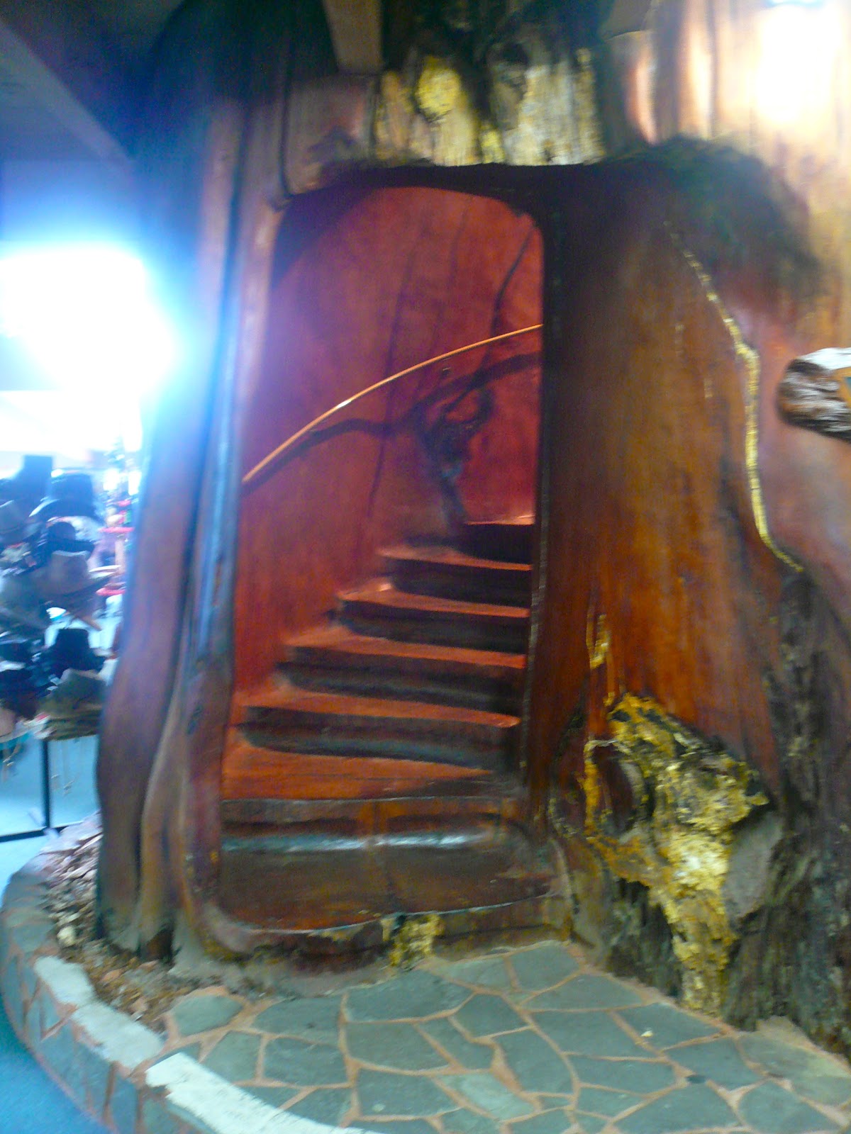 Next went to the Ancient Kauri Kingdom. Here 500,000-year-old Kauri stumps are dug out of the swamps (they call them Swamp Kauri) and made into lots of different things. There was everything from benches to tables, to spoons, to spinning tops. It was cool to see, there was even a huge stump that was hollowed out and a staircase was carved into it.